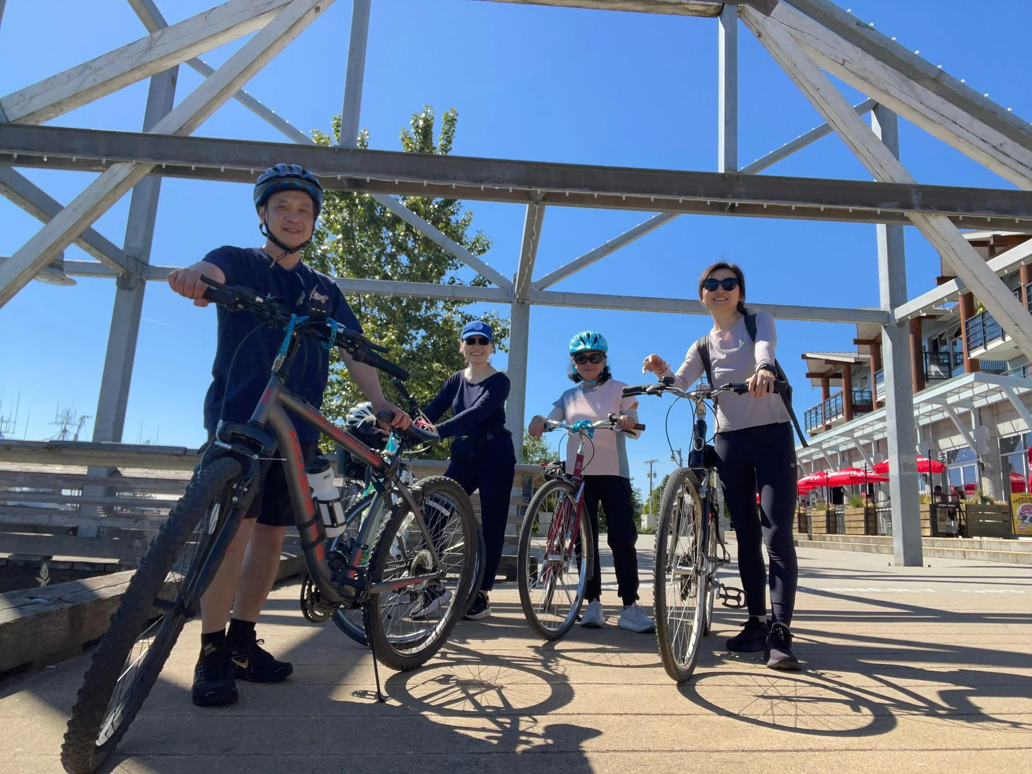 From there, we continued our journey west to Railway Avenue after picking up a box of irresistible fresh Fair stone strawberries from the highway farm stand. For lunch at Steveston Village, we settled at Kari House for delicious roti, chicken skewers, shrimp coconut curry, and stir fried green beans, topped off with none other than the box of berries for appies and dessert. We then walked off our meals and took some pics before heading on our bikes north on Railway Ave all the way to the bike park on Granville Ave. Jupiter bravely test rode on the bike moguls before we headed back towards Richmond Centre to part ways. It was a fun filled activity and we likely cycled at least 25 - 30 kms of Richmond’s flat trails.